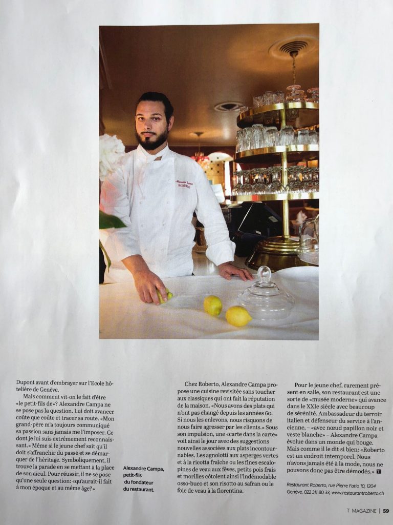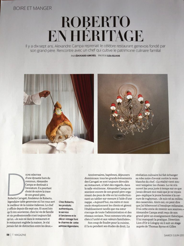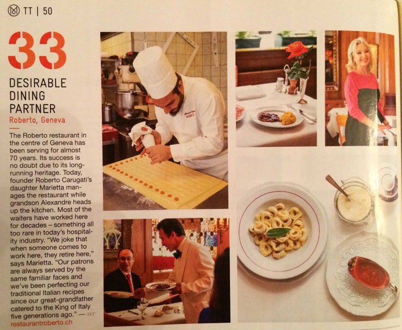- VOIR L'ARTICLE - TRIBUNE DE GENEVE Roberto en héritage LE MAGAZINE DU TEMPS Roberto en héritage suite LE MAGAZINE DU TEMPS - VOIR L'ARTICLE - TRIBUNE DE GENEVE Le petit-fils de Roberto montre le bout de son nez - VOIR L'ARTICLE - PLAISIRS Roberto Carugati justement honoré par l'académie de la gastronomie italienne - VOIR L'ARTICLE - TRIBUNE DE GENEVE Roberto Carugati a 100 ans! - VOIR L'ARTICLE - PLAISIRS La succession de Roberto est assurée - VOIR L'ARTICLE - GAULT & MILAULT Si tous les chemins mènent à Rome - VOIR L'ARTICLE - GASTRO JOURNAL R. Carugati a regalé Genève. - VOIR L'ARTICLE - L'HEBDO Théâtral. L'incontournable grand restaurant a l'italienne de Roberto Carugati - VOIR L'ARTICLE - MONOCLE Desirable Dining Partner
